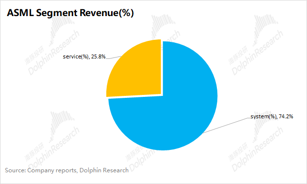 阿斯麦(ASML)的业务由系统销售收入和服务收入两部分构成,其中系统销售收入占比接近3/4,是公司最核心的收入来源。