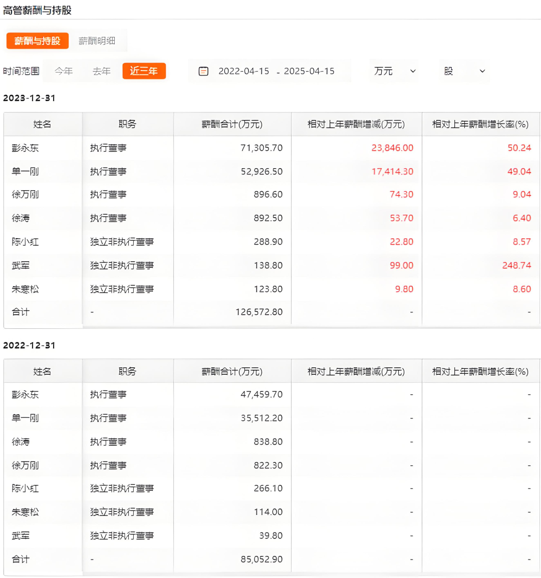 被动经历了管理核心震荡的贝壳,又遭遇了宏观经济背景下,行业性的周期轮转,2022年公开财报显示净亏损13.97亿元,这本也属情理之中。可与此同时,彭永东与单一刚的年薪分别大幅增长至4.75亿元和3.55亿元。