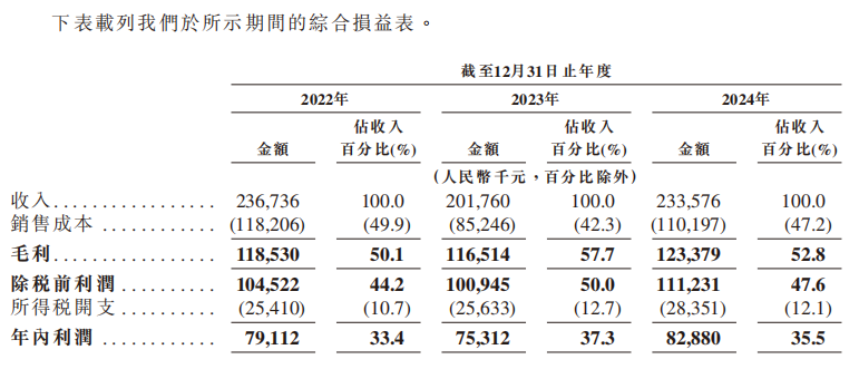 同期,净利润分别为人民币7910万元、人民币7530万元及人民币8290万元,对应的净利率分别为33.4%、37.3%及35.5%。