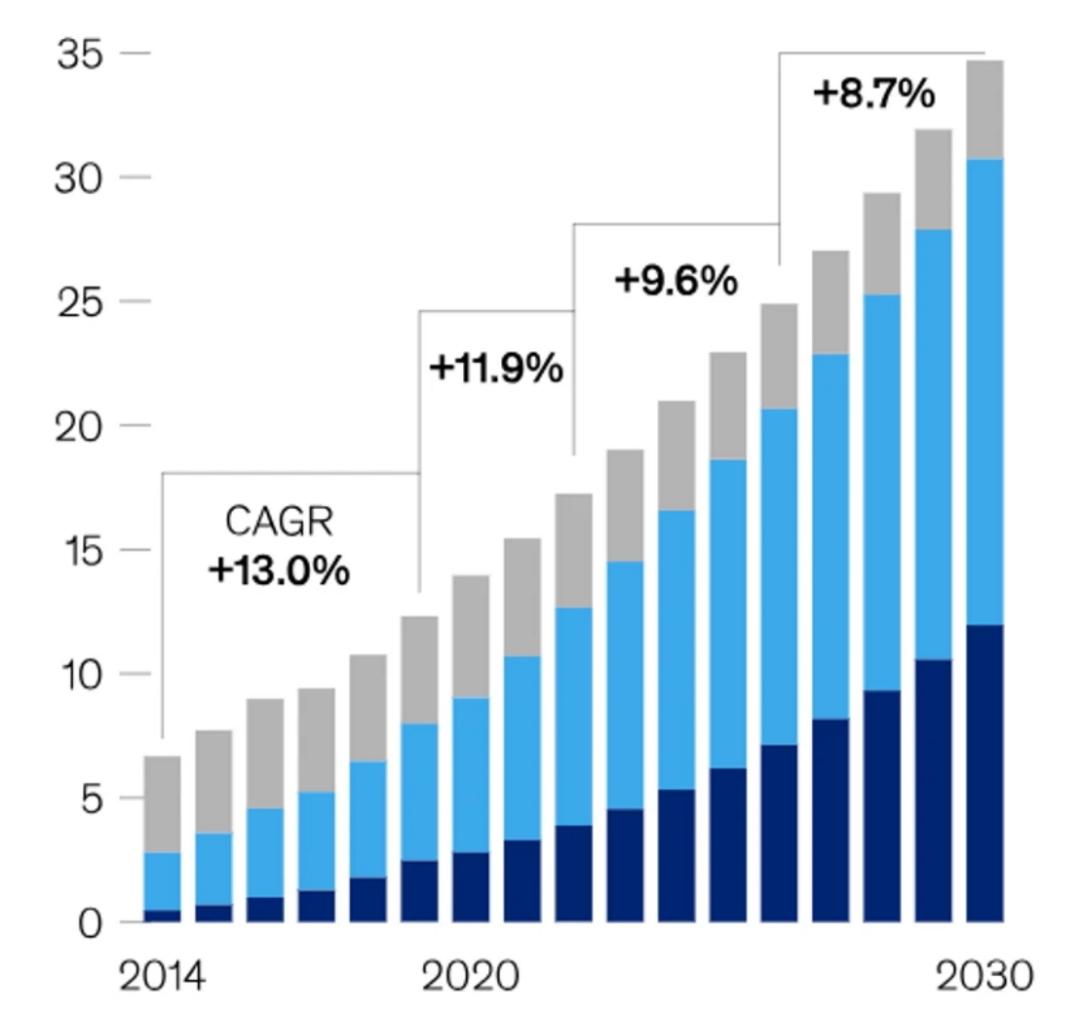 功率密度的提升意味着这些芯片产生的热量也会显著增加。因此,冷却系统也必须更加强大。如此规模的电力和冷却变革将要求未来人工智能驱动的数据中心进行全新的设计。这将导致底层芯片和数据中心基础设施出现巨大的供需失衡。考虑到数据中心建设所需的时间,业内专家预测,我们正处于数据中心十年现代化升级的初期阶段,旨在使其更加智能化。