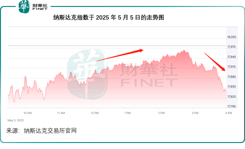 4月份的服务业PMI达到51.6点的水平,着实让市场喜出望外,美股三大指数原本低开低走,在公布服务业PMI后反弹,但是回味过后,投资者的忧虑并没有消散,美股收盘前续跌。以反映科技股表现的纳斯达克指数(IXIC.US)为例,低开后持续上下波动,午后公布服务业PMI后一度走高,但是尾盘急速走低,收盘跌133.49点,或0.74%,报17,844.24点。