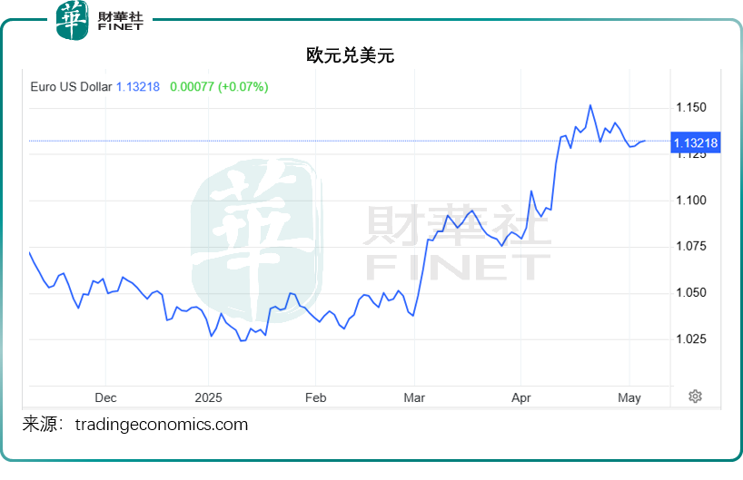 另一方面,衡量美元指数的重要对比货币欧元,维持强势,保持在1.13美元以上水平,主要原因是欧元区的通胀超出预期,4月份通胀数据为2.2%,稍高于预期的2.1%,但是服务业通胀率却跳升至3.9%,扣除食品和能源价格后的核心通胀率则升至2.7%,均超出预期,因此交易员或普遍下调欧洲央行今年的降息幅度至60个基点,而前几天的预期为降息66个基点。