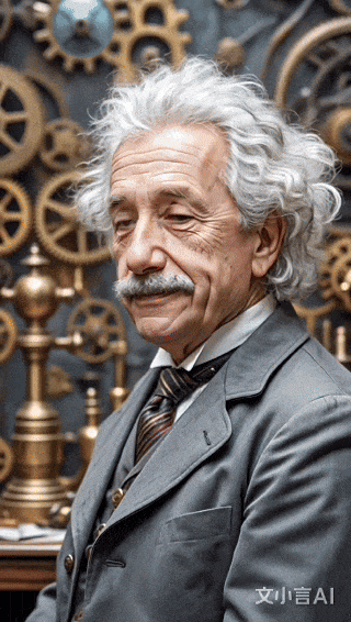 ▲用文小言生成的蒸汽朋克风的爱因斯坦动图