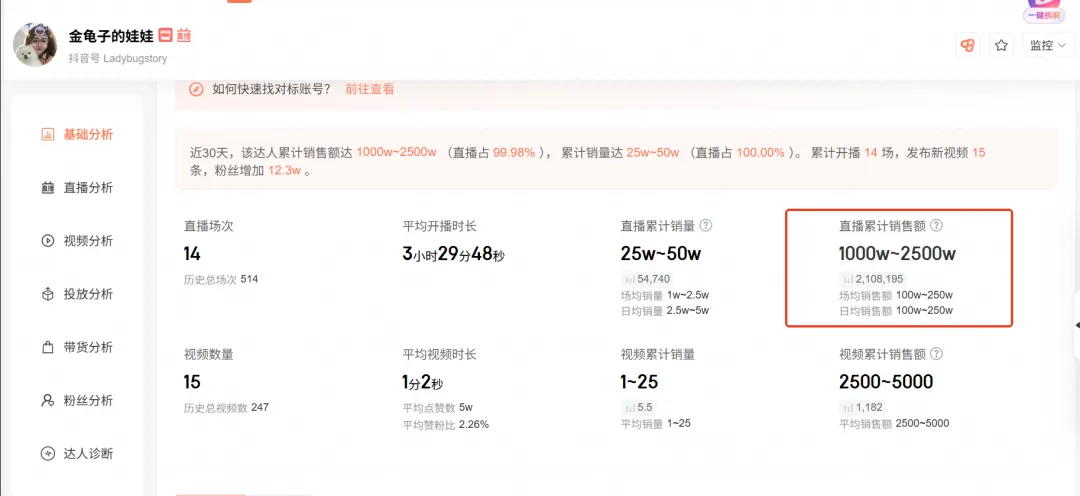 据蝉妈妈数据,“金龟子的娃娃”近30天共直播14场,总销售额达1000万至2500万元,总销量25万至50万单,涨粉12.3万,总粉丝量达到220.3万。但与金龟子IP强绑定之后,在唤起不少消费者童年回忆并让其为情怀买单的同时,“啃老”的质疑声也随之而来。