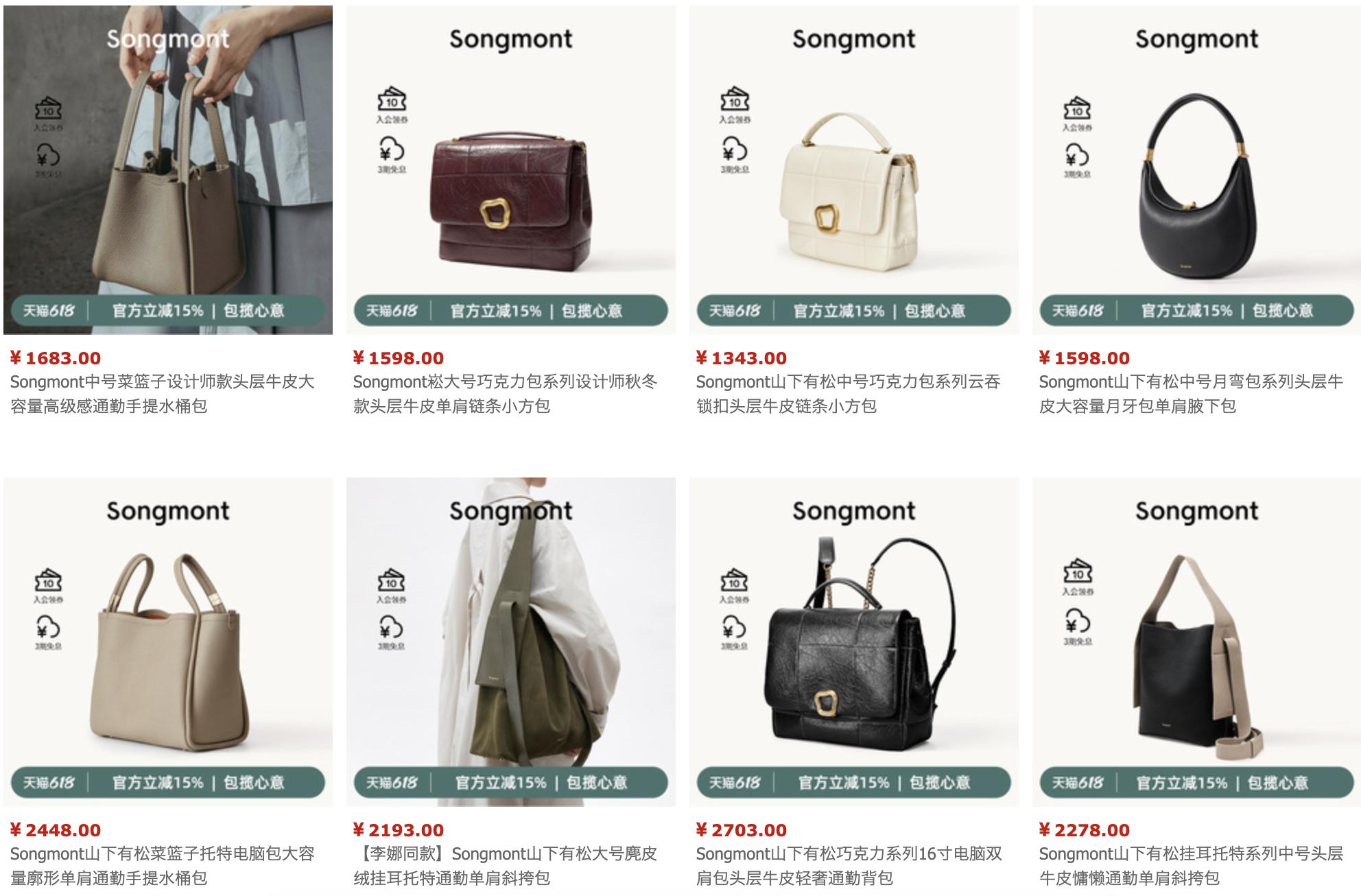 在社交媒体平台上,越来越多的国产品牌,诸如Songmont山下有松、裘真、迪桑娜、个乐、古良吉吉、包包树、PECO、Amazing Song、山水集……被追逐小众品牌的KOC们频频推荐,国产包开始有了姓名。