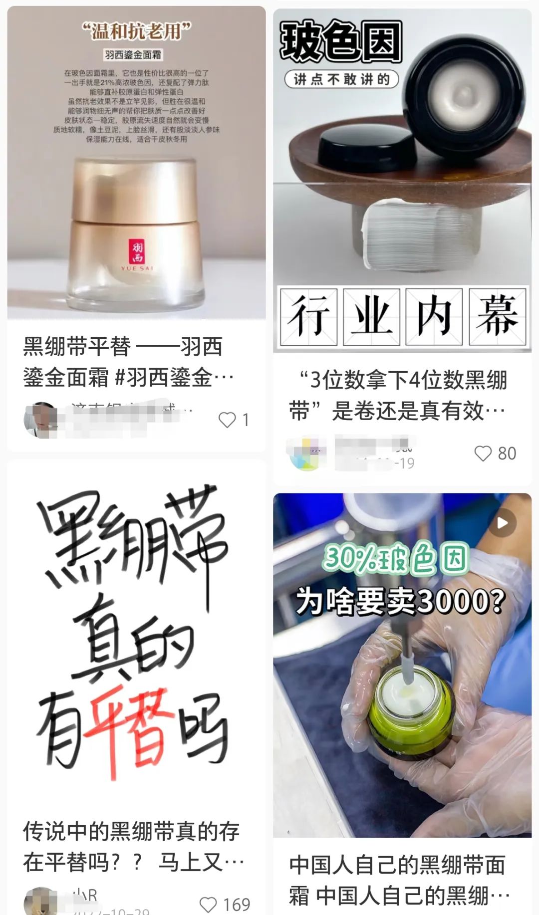 但剁椒同时发现,赫莲娜中国品牌区总经理刘扬同时还担任羽西品牌经理。2021年起,羽西的第二代虫草鎏金瓶精华中加入了赫莲娜中的王牌成分玻色因,社媒上出现大量“羽西=黑绷带平替”种草话术,显然,借助王牌成分,欧莱雅尝试在相对更低的价格带塑造新爆品。