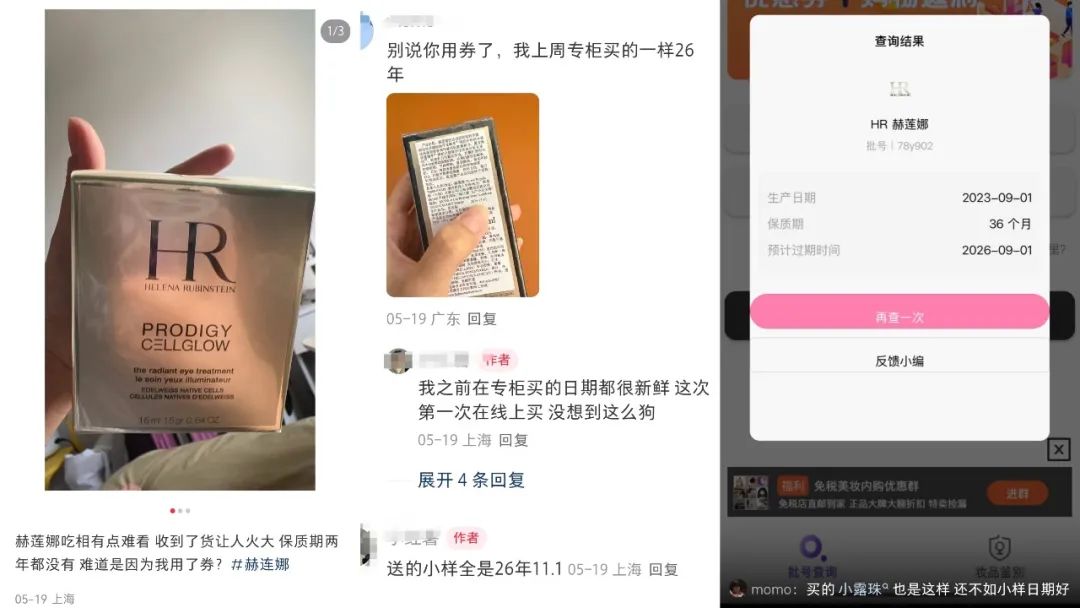 coco也透露,其所在的品牌专柜出售的赫莲娜大量是2026年中就会到期的旧货,甚至今年为了清库存,旧货出清情况比去年更严重。