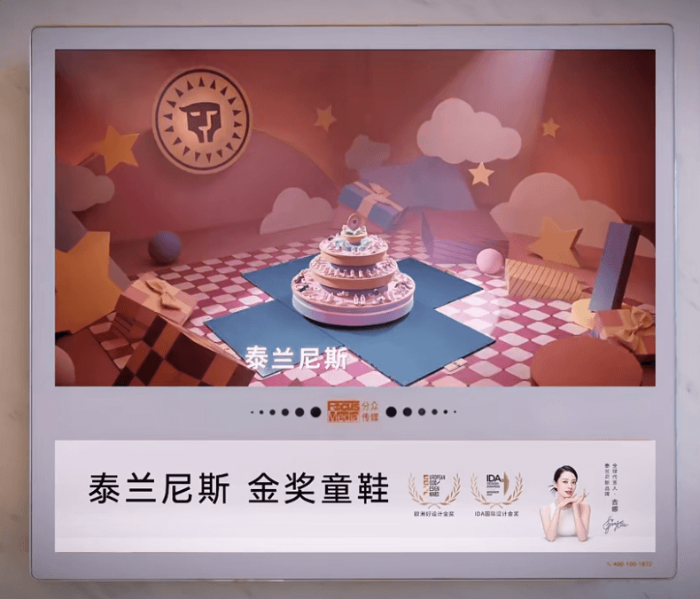2022年,被丁飞称为真正开启品牌元年。这一年泰兰尼斯在全国100多座城市投放电梯广告进行饱和式传播,实现总曝光人次超93.3亿,总触达人数超4亿;此外,北京、上海、广州等50余家核心机场、高铁站的广告牌也没放过;当年的天猫双十一,泰兰尼斯以1.5亿元的GMV(商品交易总额)拿下双11童鞋品类第一,线下商场销售同样排名第一。这一阶段,泰兰尼斯打赢了从小众走向大众的关键战役,实现业绩飞升的同时,也将更多父母拉入自己的病毒式传播场域;