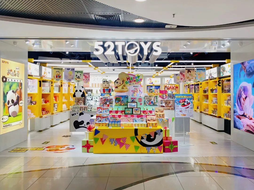 值得关注的是,自有IP的缺乏也影响了52TOYS的品牌辨识度和品牌形象。授权IP模式下,合作往往并非独家,像三丽鸥、草莓熊这类IP在众多潮玩品牌门店随处可见。