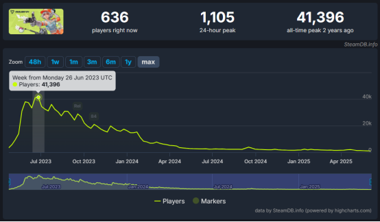虽然官方宣称《远光84》在海外测试两年多,纯靠自然流量实现了超100万的日活、至今5000万的注册用户,但从Steam在线用户数据来看,时至今日海外的热度很难说对国服的启航提供多大帮助。