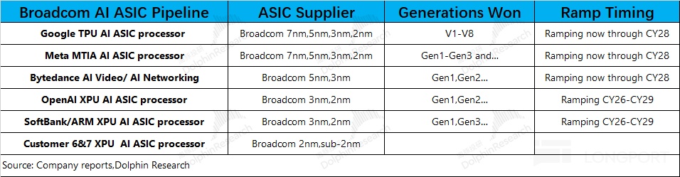①从客户情况看:博通在 ASIC 领域的客户情况相当健康,公司已经与 7 个客户开展定制 ASIC 的业务合作,其中包括谷歌、meta、字节跳动、OpenAI、软银及其他两位新客户。