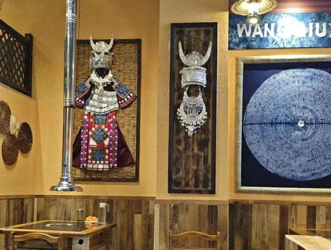 装修风格上,整体偏简单质朴,就餐区多配置木桌木凳。部分门店还会融入贵州地域元素,例如上海的王秋香贵州烙锅烤肉,在墙上装饰了民族服饰、扎染布料等特色物件。