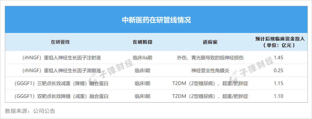 中新医药是一家聚焦代谢性疾病及神经系统疾病的创新生物药研发企业,但其核心管线尚处于临床早期阶段——1个品种进入II期、3个品种处于I期。
