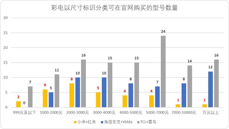 比如电视机,自2013年推出小米电视1以来,在不同价格带中小米的产品相对克制,从现如今头部电视品牌售卖的型号来看,小米在所有价格带几乎都是售卖型号最少的品牌。
