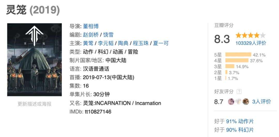 当然,《灵笼》目前的播出平台仍然是B站。5月23日,这部“六年磨一剑”的国漫神作终于迎来了第二季,对于翘首以盼的观众而言堪称“有生之年系列”。在豆瓣,超过10万人为《灵笼》打出了8.3分,对一部完全原创IP的国创而言,绝对算得上是“国创之光”。在此后几年时间,在播出平台B站,一直有很多UP主逐帧做各种切片式分析点评,也让这个IP不断吸引新人入坑,保持热度始终不减,累计播放量已达6.9亿。