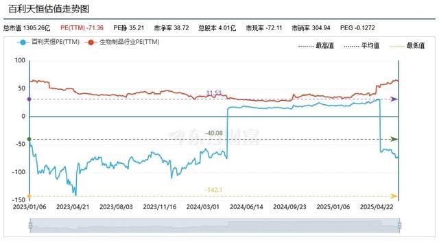 从资本市场的角度观察,百利天恒的股价目前仍处于高位,截至2025年6月13日收盘,公司总市值仍高达1305亿元。但是,值得注意的是,东方财富数据显示,其市销率(TTM)目前已超过300倍,估值水平明显高于行业平均。