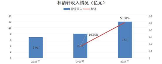就已披露的三年财务数据看来,林清轩有着不错的表现。其中2024年,林清轩实现营业收入12.1亿元,同比增速更是达到50.31%。