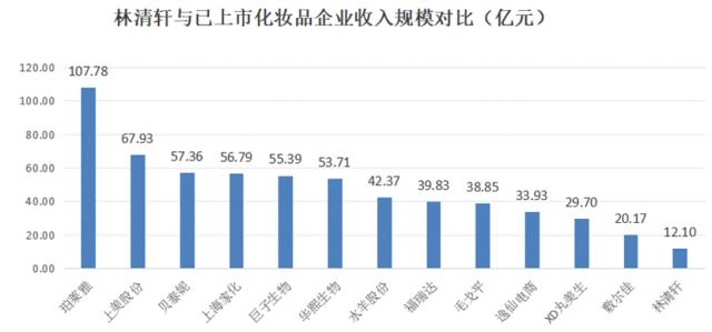 其次,小而美的品类限定下,盘踞第一的林清轩收入规模垫底其他化妆品品牌企业。