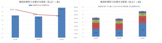 值得注意的是,林清轩线上起量并非简单的明星代言、KOL合作、买量宣发,过去三年其营销与推广开支(广告合作与渠道相关费用等)分别2.08亿元、1.88亿元、3.65亿元,对应的费用率为30.1%、23.4%、30.2%,这一费用与费用率水平美妆行业中已属克制。