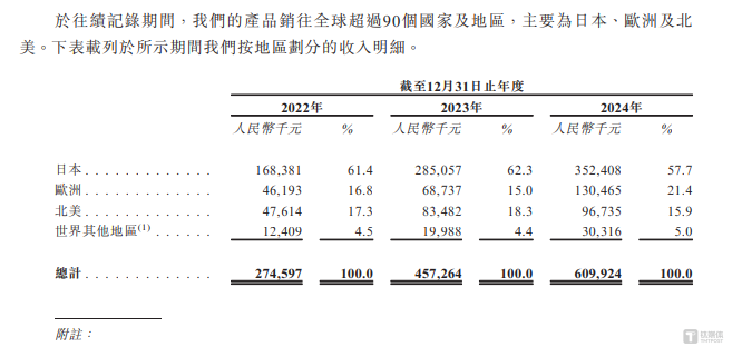 市场布局上,日本市场对卧安机器人意义重大。报告期内,来自日本的收入分别为16838.1万元、28505.7万元、35240.8万元,占当期营业收入的比例依次为61.4%、62.3%、57.7%。由此可见,日本市场的蓬勃发展,成为卧安机器人登顶全球的重要推力。