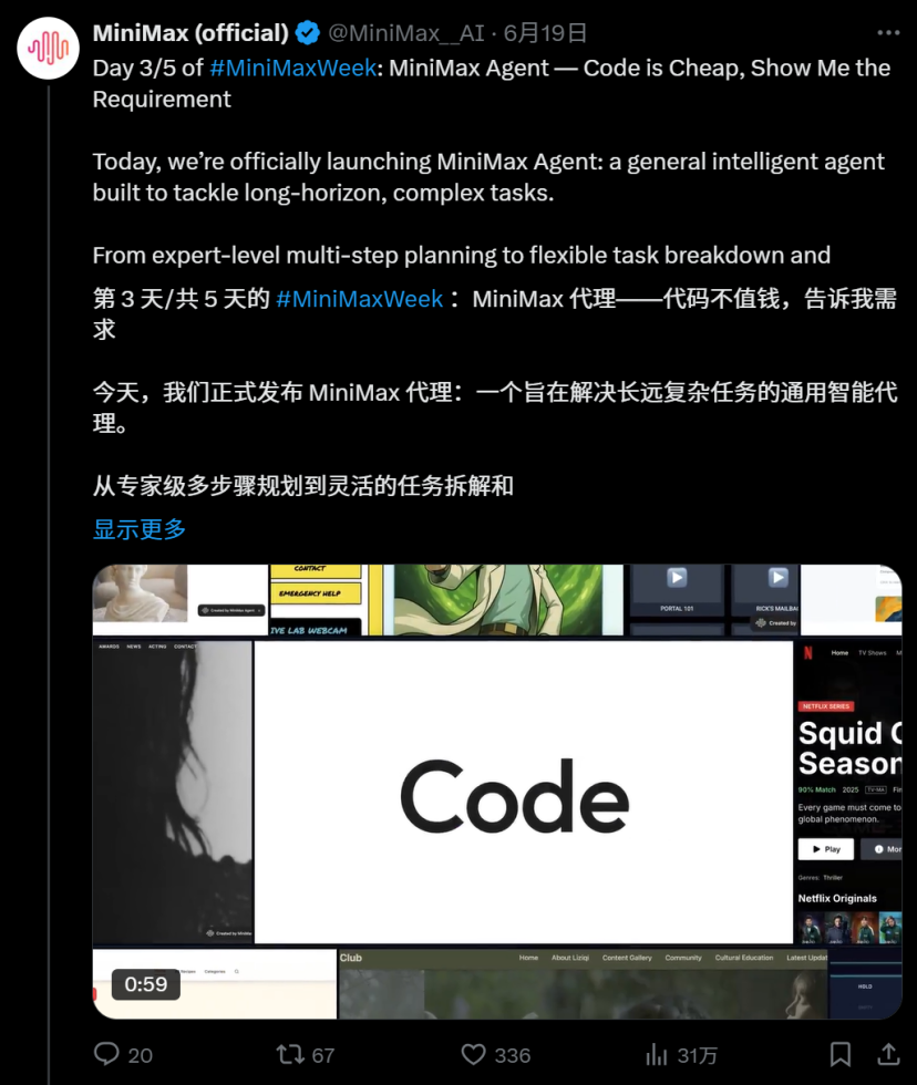 这点对用户心智的冲击,其实比 MiniMax 更强。