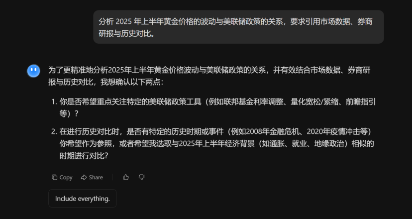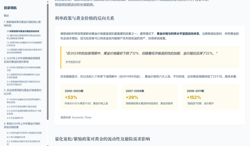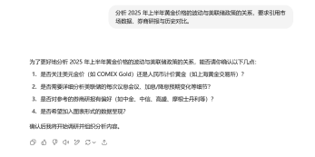 比如说我想让它分析下2025年上半年黄金价格波动与美联储政策走向的关联性。