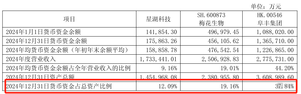面对问询,星湖科技搬出了行业特殊性作为挡箭牌。公司对比梅花生物(600873.SH)和阜丰集团(00546.HK)称,生物发酵行业属于资金密集型行业,需要较大的资产投入及资金储备以应对生产经营所需。