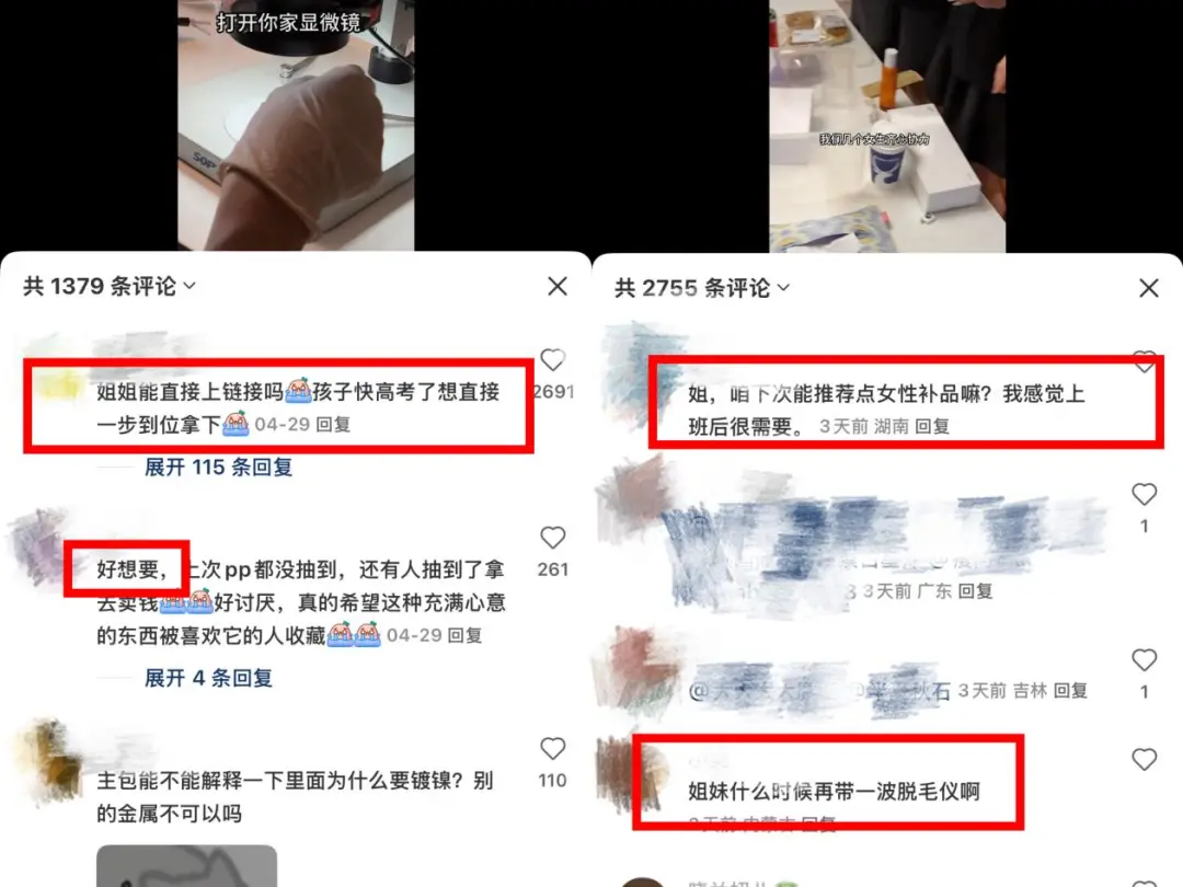 和李嗲本人一样,她的粉丝们拥有多元的观念、重视产品的实用性和新鲜感,他们也偏爱大胆、有态度的趣味表达,在围绕实验内容进行专业讨论之外,也会亲密地调侃李嗲和付铁寒,在遇到心选好物的时候,也会信任地向“嗲姐”求链接。
