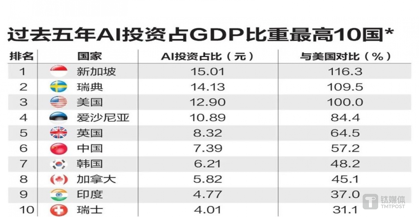 对AI高度敏感的消费和企业市场为AI创业提供了沃土,也激发了活跃的人工智能创投生态。根据AIPRM数据,从2019年至2023年5年间,新加坡在AI领域的投资累计约70亿新元,占2022年GDP的1.5%,位居全球第一。