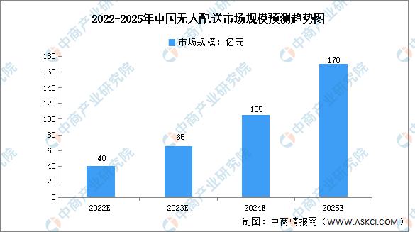 根据中商产业研究院发布的《2024-2029年中国无人配送行业市场调查及投资建议报告》显示,2023年中国无人配送市场规模约为65亿元,预计到2025年市场规模将达170亿元。