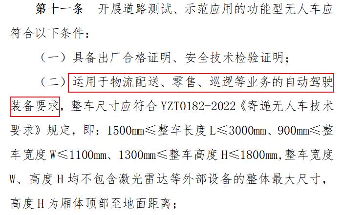济南则对无人物流车的装备作出了具体规定,并对交通违法与事故处理做出了明确的规定,比如装备就对资质、尺寸、提醒功能、监控功能等做出了具体要求。