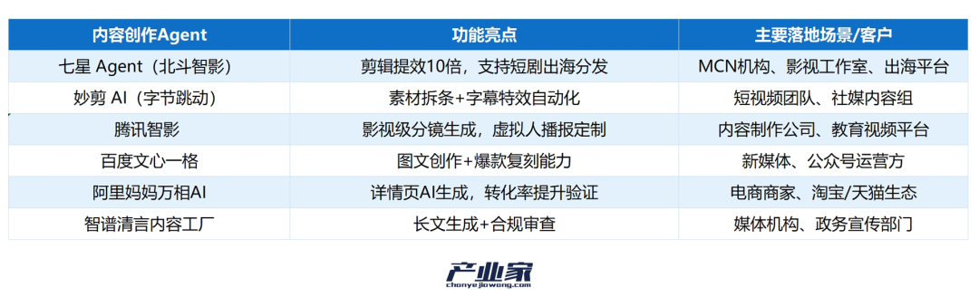 整体来看,内容创作 Agent 的成熟度不如营销场景,商业模式以“SaaS 订阅+平台服务”为主,优势在于提升产能、降低门槛,但创意打磨仍需人脑接力。