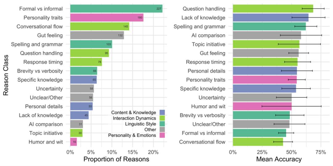 ▷图6. 判别是否为人类时所基于的因素占比. 图源:[3]