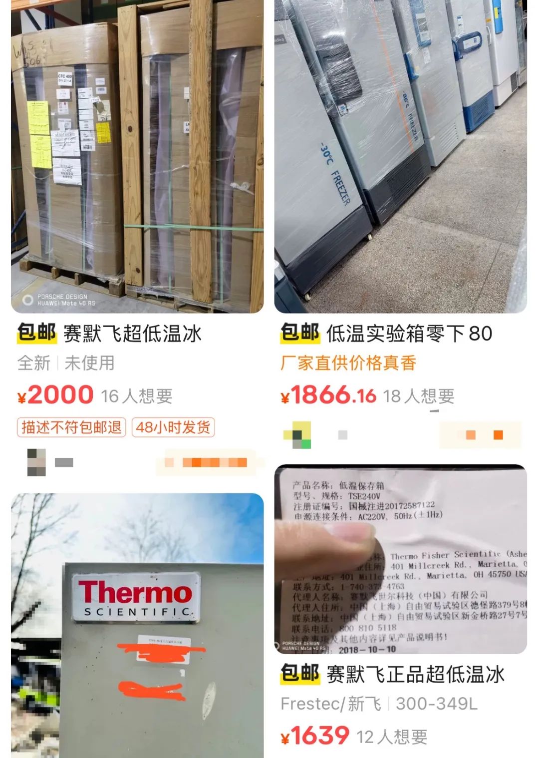 业内人士向剁椒表示,一台-86℃专业冰柜约3—4万左右,特制防裂玻璃杯成本4—5元一个,而剁椒在平台检索看到,实验室二手的-86℃冰柜转让价仅2000元左右。