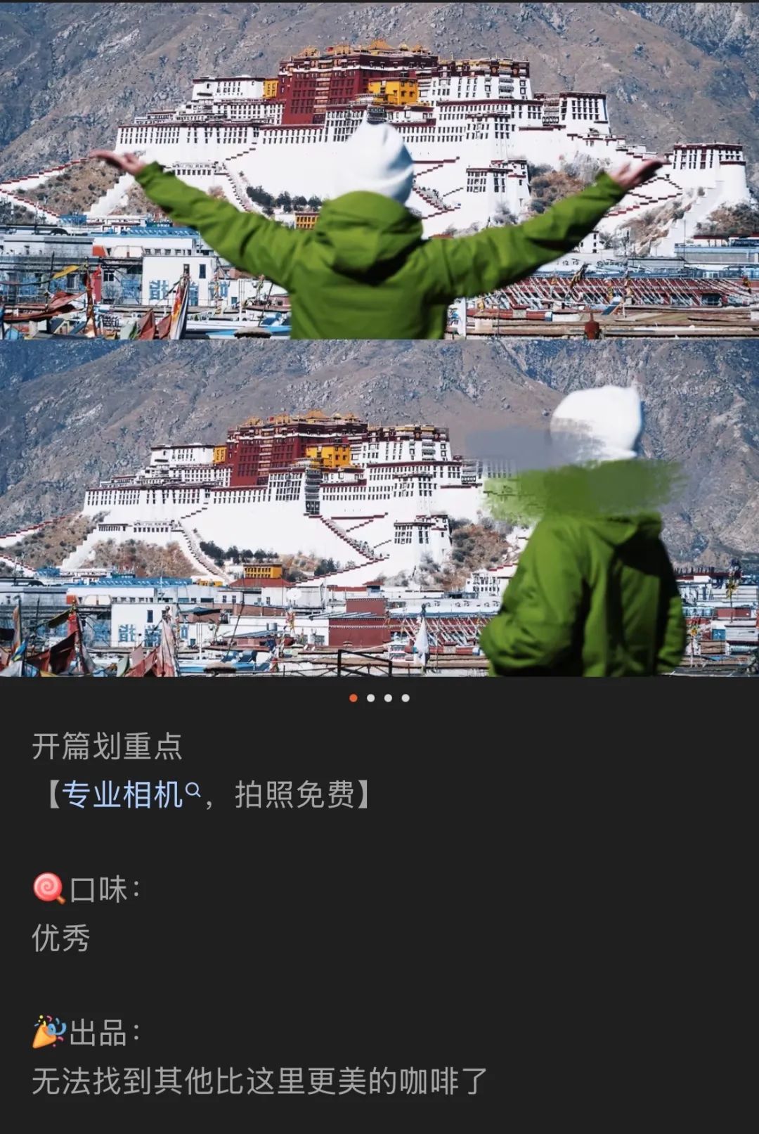 抖音上“买咖啡拍布达拉宫”的攻略动辄数万点赞,更让这种模式成了流量密码,消费者花40多块买杯咖啡,本质上是买最佳打卡机位,用消费即可解锁稀缺视角的便利,把地标景观转化成可消费的场景。