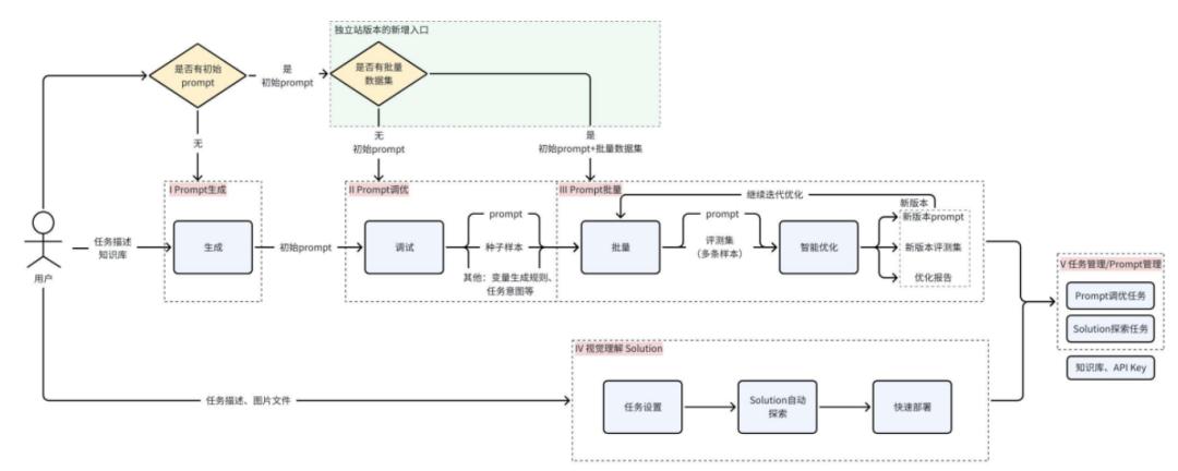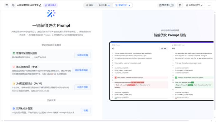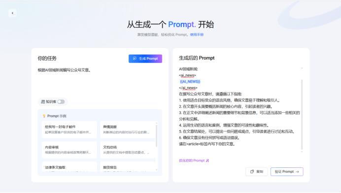 平台介绍中提到,该产品不仅可以提供精准、专业、可持续迭代的提示词,还可以覆盖大模型开发从构想、开发部署到迭代优化的全过程。