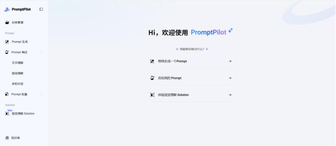 主界面UI看上去很简洁,功能主要有三个:Prompt生成、Prompt优化和视觉理解Solution。