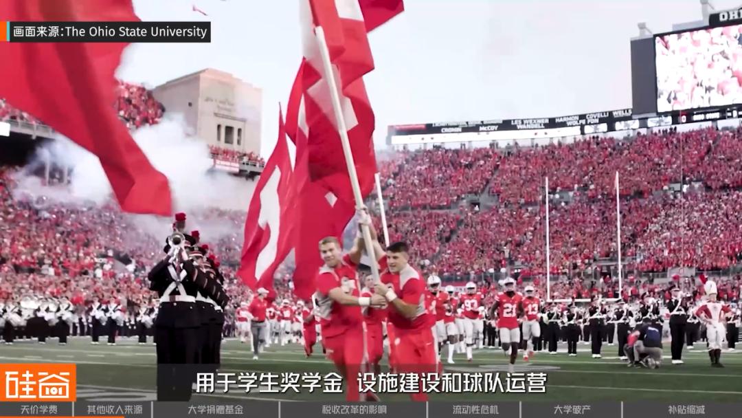 再看体育队,尤其是像NCAA一级联赛(简称D-I,是美国大学体育总会NCAA下的最高级别联赛)这样的体育项目。以俄亥俄州立大学为例,其体育部门在2023财年创下2.8亿美元营收,主要来自NCAA比赛门票、电视转播、赞助商以及校友捐赠,属于全美顶尖水平。