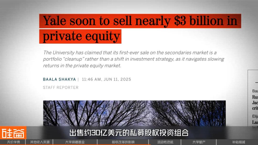 6月10日,耶鲁正洽谈通过二级市场出售约30亿美元的私募股权投资组合。校方发言人表示,这项代号为“Project Gatsby”的交易,将帮助学校把流动性较差的私募资产变现为现金,用于下一轮投资。