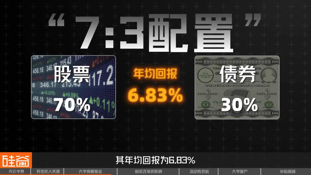 但过去十年里,NACUBO数据显示,总额达8740亿美元的大学捐赠基金,其年均回报率为6.8%。而一个全球70/30配置(70%股票、30%债券)的投资组合,其年均回报为6.83%。