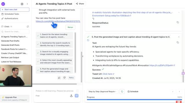 Pokee最大的不同是,它可能是目前所有的Agent里面最快的——总体速度应该在市面上所有产品的4-10倍左右。我们有个正在开发中的Deep Research Agent,最后会有我们自己的Deep Research Agent,加上我们的执行Agent放在一块,总体体验会有大幅提升。