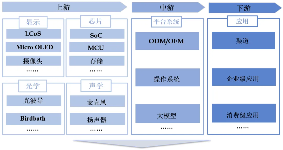 从硬件制造(芯片、光学器件、传感器等)、软件系统(AI算法等)到品牌应用,中国AI眼镜产业链已形成完整的产业生态。