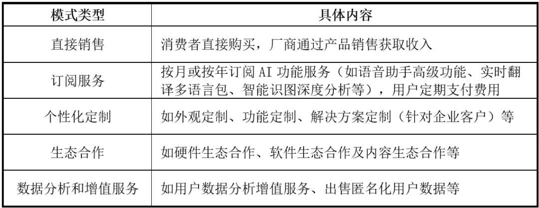 表6:AI眼镜的主要商业模式