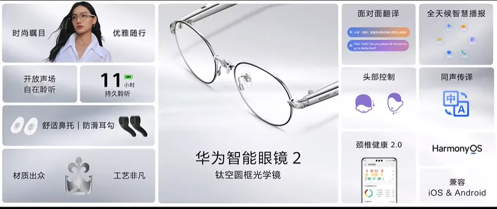 学习办公:在学习场景中,AI眼镜可作口语AI老师,借智能分析能力为用户提供个性化口语辅导,拍照翻译和同声传译功能也成用户外语运用的强力工具。具体而言,学习时它是多语种口语老师,涵盖英语等多种语种及不同风格,且具备拍照翻译和即时互译功能;在工作场景里,它能作为AI顾问设置信息提醒,协助用户合理安排时间、提升工作效率,还能实现多设备无缝衔接以高效工作。具体来说,工作时它是智能助理,有信息提醒、工作流助手功能,还能基于 Harmony OS 系统实现多设备互联,让用户在工作场景中无缝切换设备,享受高效智能体验。