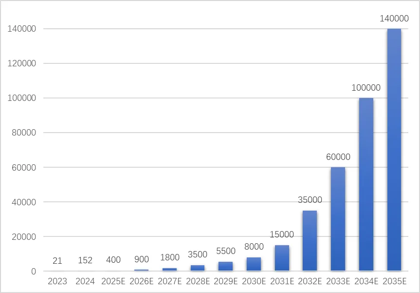 目前Al眼镜发展仍处于探索期,国外如微软、苹果、谷歌、三星,国内如小米、vivo、腾讯、字节、魅族等大厂纷纷进场,将推动Al眼镜走向大规模增长。2024年全球AI眼镜销量约为152万副,预计到2035年,销量将达到14亿台,渗透率达70%,成为下一代通用计算平台[1]。