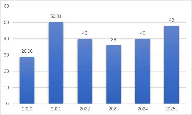 从全球范围内来看,2020-2024年全球智能眼镜市场整体波动上涨,2021-2023年全球智能眼镜市场规模增长承压,降至36亿美元左右。随着技术迭代升级,多家企业智能眼镜产品相继发布,2024年智能眼镜市场规模达40亿美元。