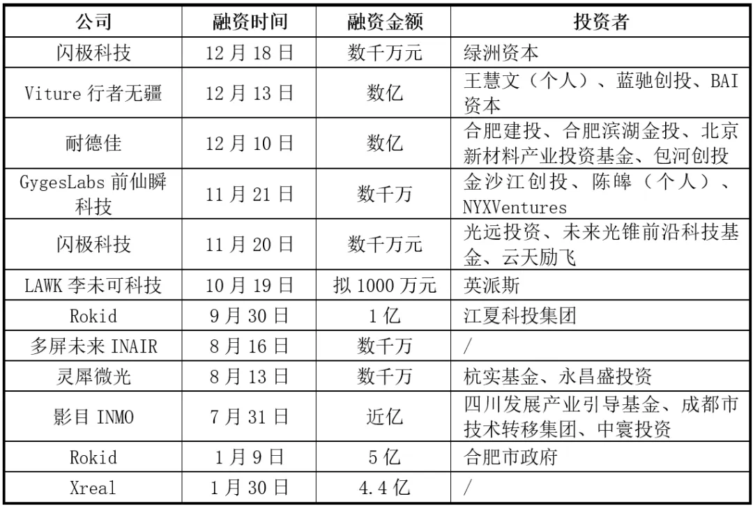 表5:2024年AI眼镜部分融资情况