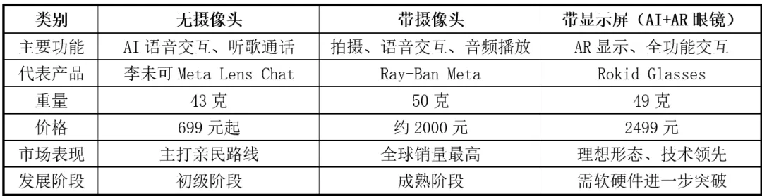 表2:AI眼镜三大类型对比