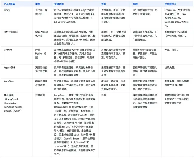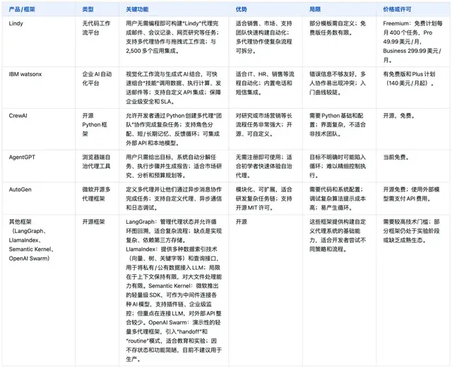 开源框架(LangGraph、LlamaIndex、Semantic Kernel、Swarm)则供开发者在特定场景下搭建自定义系统。