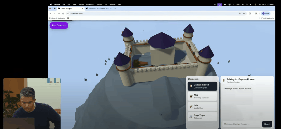 最夸张的是,演示中OpenAI的工作人员直接用3段提示词,就让GPT-5生成了一个带射击小游戏功能的城堡3D模型,还能和城堡上的士兵聊天。你点击周围的气球,就能发射弹药把气球打爆,同时还会伴随爆炸的音效。
